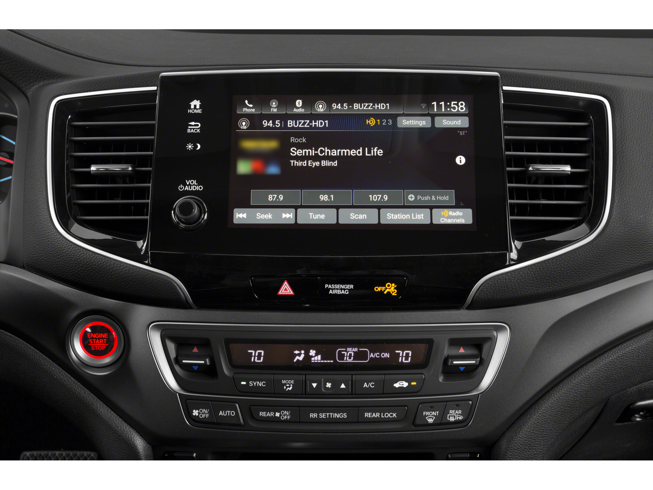 - Radio: 215-Watt Audio System -inc: 7 speakers, subwoofer, 8" display audio w/high-resolution electrostatic touch-screen and customizable feature settings, 2.5-amp USB smartphone/audio interface front console (1 port), Bluetooth® HandsFreeLink, Bluetooth® streaming audio, MP3/auxiliary input jack, Radio Data System (RDS), Speed-Sensitive Volume Compensation (SVC), 2.5-amp USB charging port in center console (1 port) and 2nd row (2 ports), HondaLink, CabinControl remote compatibility, Apple CarPlay integration, Android Auto integration, SMS text message function (Compatible w/select phones w/Bluetooth®, Your wireless carrier's rate plans apply, State or local laws may limit use of texting feature, Only use texting feature when conditions allow you to do so safely.), SiriusXM radio (SiriusXM services require a subscription after any trial period, If you decide to continue your SiriusXM service at the end of your trial subscription, the plan you choose will automatically renew and bill at then-current rates until you call SiriusXM at 1-866-635-2349 to cancel, See our customer agreement for complete terms at www.siriusxm.com, Fees and programming subject to change.Available in the 48 contiguous United States and D.C, SiriusXM and all related marks and logos are trademarks of SiriusXM Radio Inc, HD Radio and CabinTalk in-car PA system through headphones