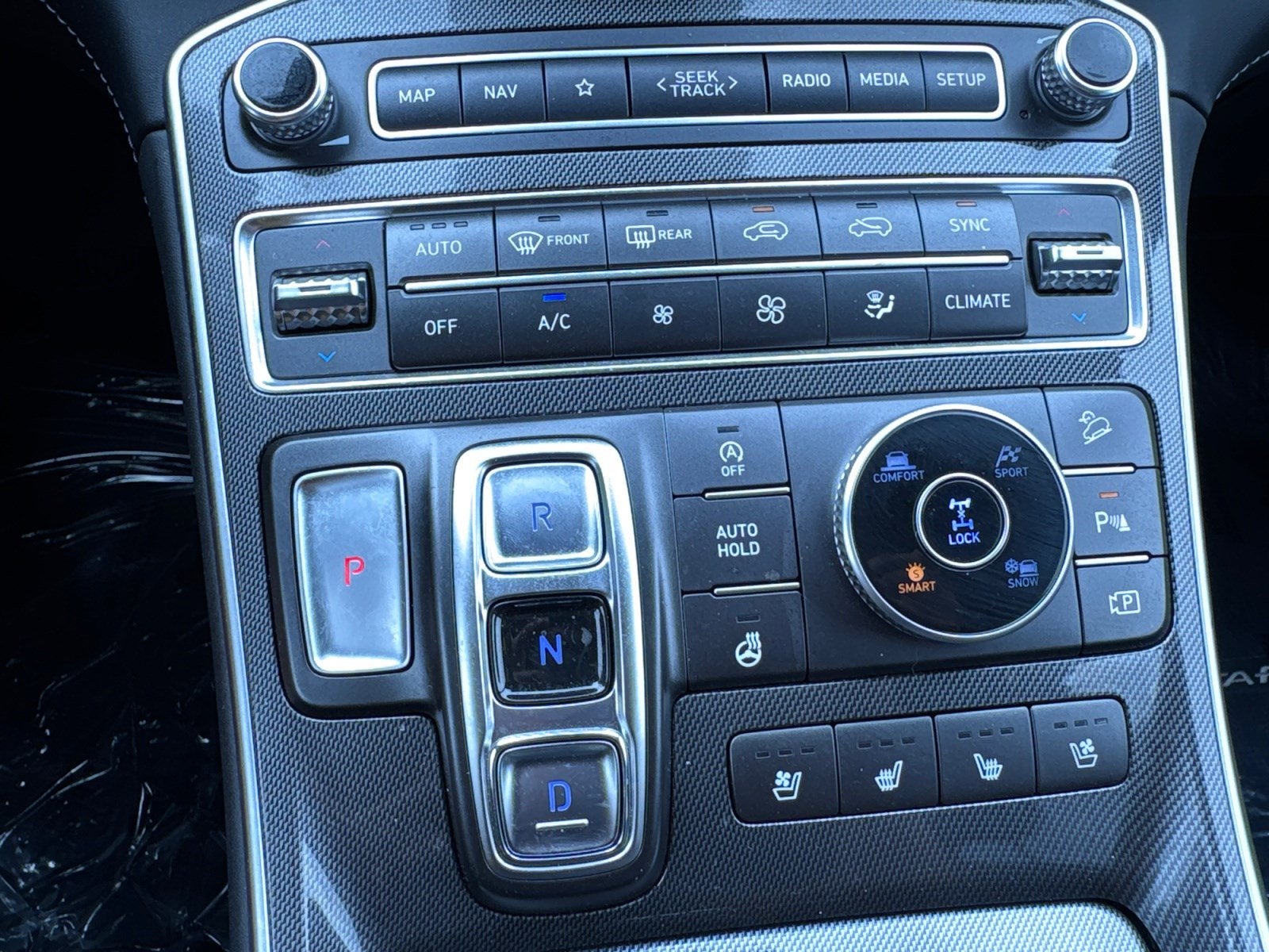 - Radio: AM/FM/MP3 Harman Kardon Display Audio -inc: 630 Watts, 10.25" wide touchscreen, Apple CarPlay and Android Auto, Bluetooth® hands-free w/wireless audio streaming, voice recognition, steering wheel audio, cruise and phone controls, dual front USB ports, SiriusXM, HD Radio, Blue Link connected car system, 12 speakers including subwoofer, external amplifier, Clari-Fi music restoration technology, QuantumLogic surround, onboard navigation system w/traffic flow including incident data via HD Radio (HERE), rear seat quiet mode and wireless device charging