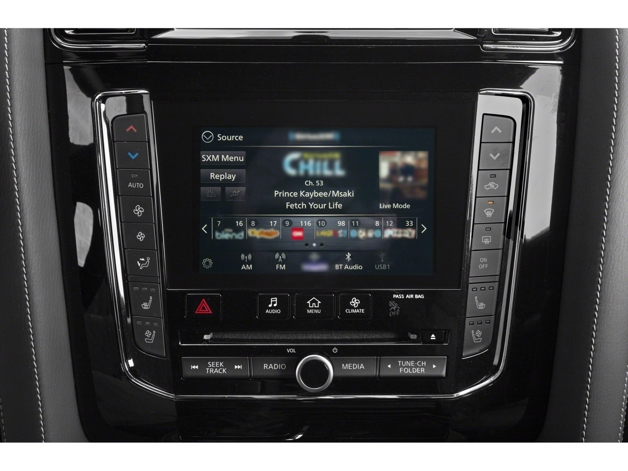 - Radio: Bose Performance Audio System w/17 Speakers -inc: driver's audio stage, INFINITI controller w/dual HD touch-screen, 8" upper and 7" lower displays, speed-sensitive volume control, illuminated steering wheel-mounted audio controls, Radio Data System, HD radio technology, Apple CarPlay, Siri Eyes Free, Android Auto, INFINITI navigation w/lane guidance and 3D building graphics,premium traffic w/live traffic information (5-year trial periord), TomTom weather w/(5-year trial period), wi-fi hotspot (30-day or 1GB trial, whichever comes first), SiriusXM radio w/advanced audio features (3-month trial period), SiriusXM Traffic w/real-time traffic information (3-month trial period), SiriusXM Travel Link w/weather, fuel prices, stocks prices, sport scores, movie listings and parking (3-month trial period), over the air update compatibility for INFINITI InTouch software, INFINITI voice recognition for audio, navigation, Bluetooth and vehicle information, Bluetooth hands-free phone system and streaming audio, hands-free text messaging assistant and 2 USB ports for compatible devices for audio streaming