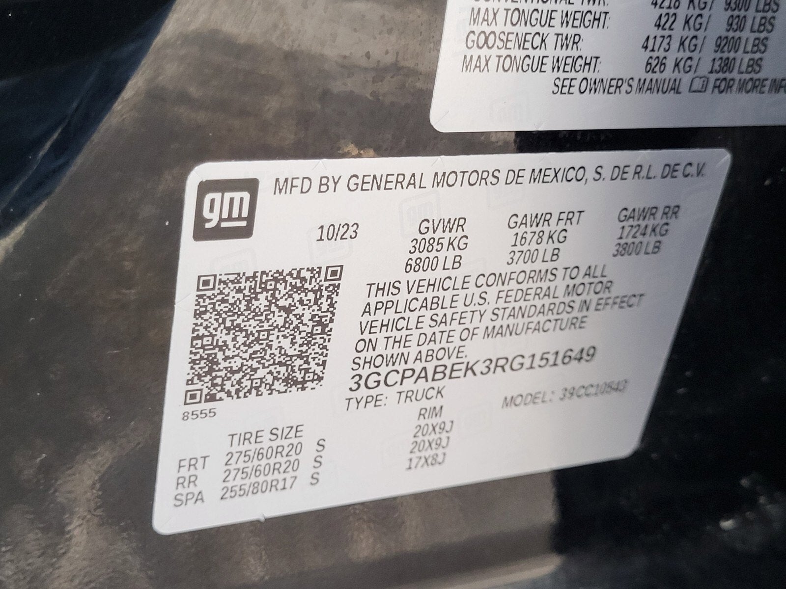 - Tires, 275/60R20 all-season, blackwall