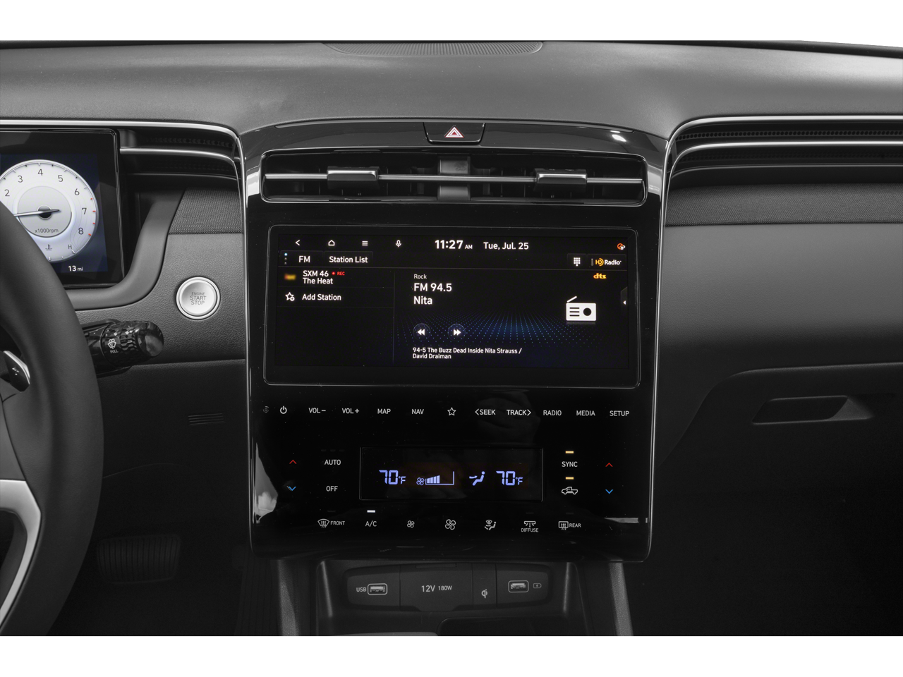 - Radio: AM/FM/HD w/Bose Premium Audio System -inc: 10.25" color touchscreen, onboard navigation and traffic flow including incident data via HD radio (HERE), map and multimedia software OTA update capability, dynamic voice recognition, 8 speakers, SiriusXM satellite radio w/3-month trial subscription, Bluelink + connected car system, Bluetooth hands-free w/wireless audio streaming, wired Apple CarPlay and Android Auto and USB connectivity