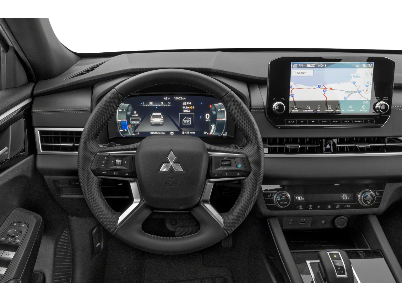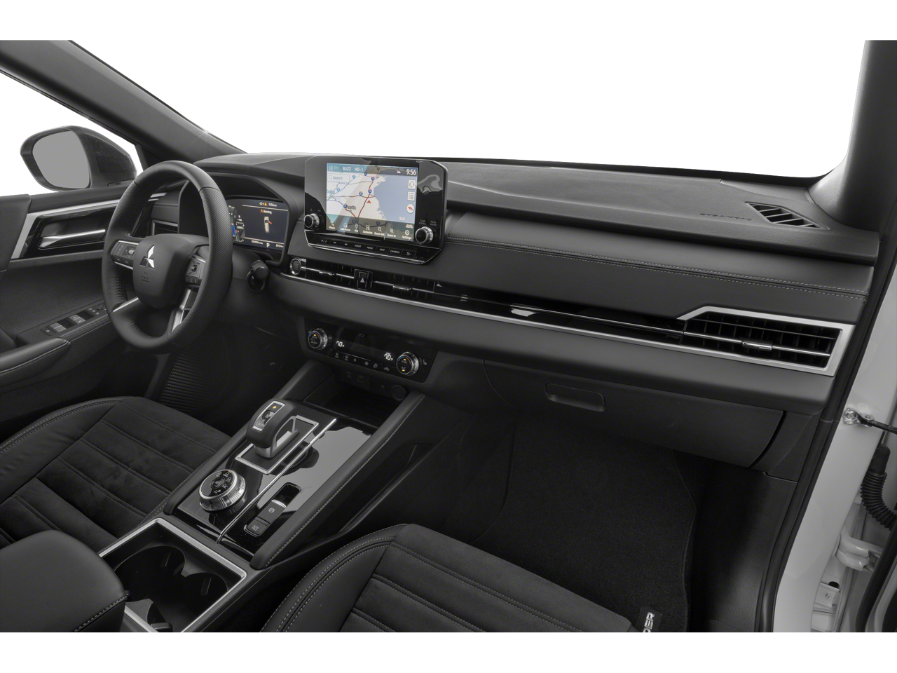 - Radio: AM/FM 9.0" Navigation w/Smartphone Link -inc: 6 speakers, Apple CarPlay, Google Android Auto, SXM all-access and SXM traffic and travel link w/90-day subscription, Mitsubishi Connect, HD Radio, Bluetooth wireless technology, steering wheel controls for phone, audio and voice recognition and USB ports