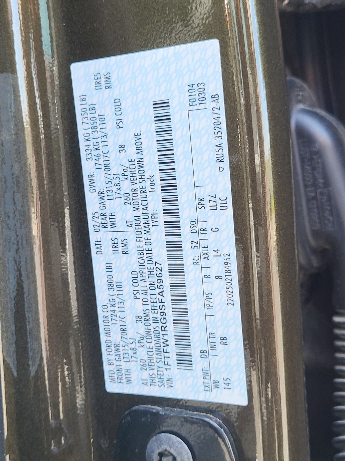 - Gross Axle Wt Rating - Front (lbs): 3800
