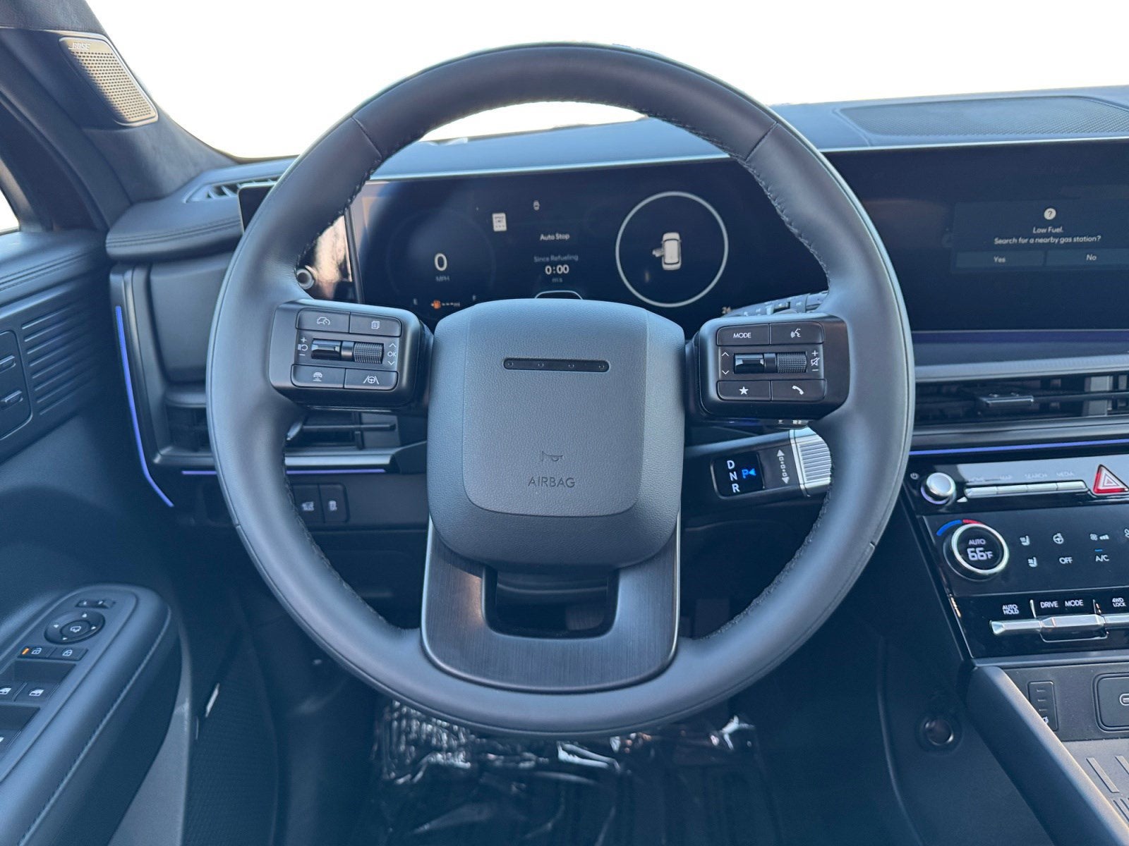 - Radio: AM/FM/HD Bose Premium Audio System -inc: 12 speakers including subwoofer, external amplifier, 12.3" wide touchscreen, Apple CarPlay and Android Auto, Bluetooth® hands-free w/wireless audio streaming, dynamic voice recognition, USB connectivity, SiriusXM, Blue Link+ connected car system, over-the-air updating capability, navigation system including traffic flow w/incident data via HD Radio (HERE) and rear seat quiet mode